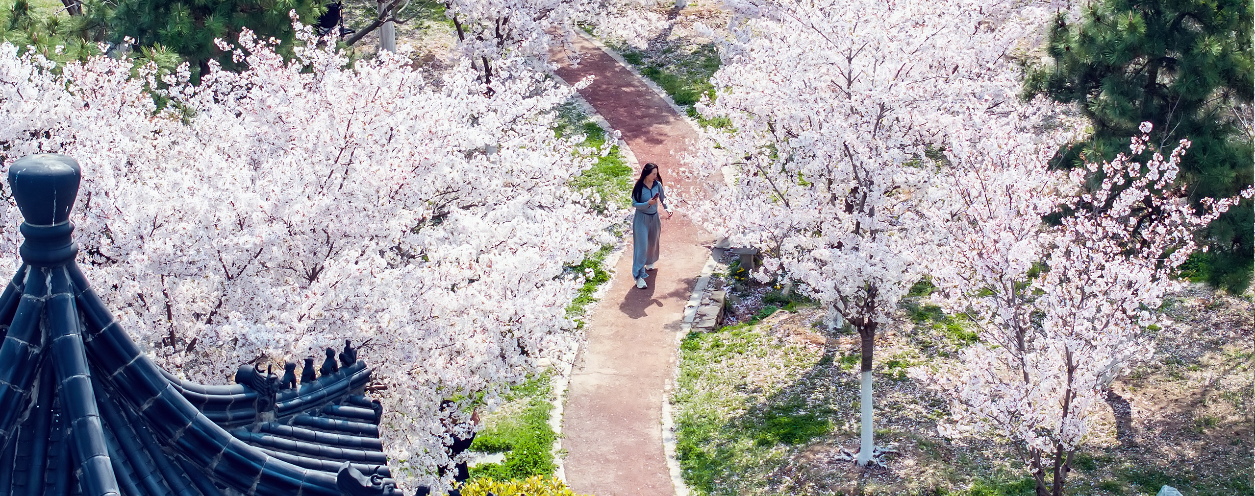 樱花盛开醉游人 江苏连云港花果山下大圣湖畔樱花烂漫,粉白相间、景致如画。