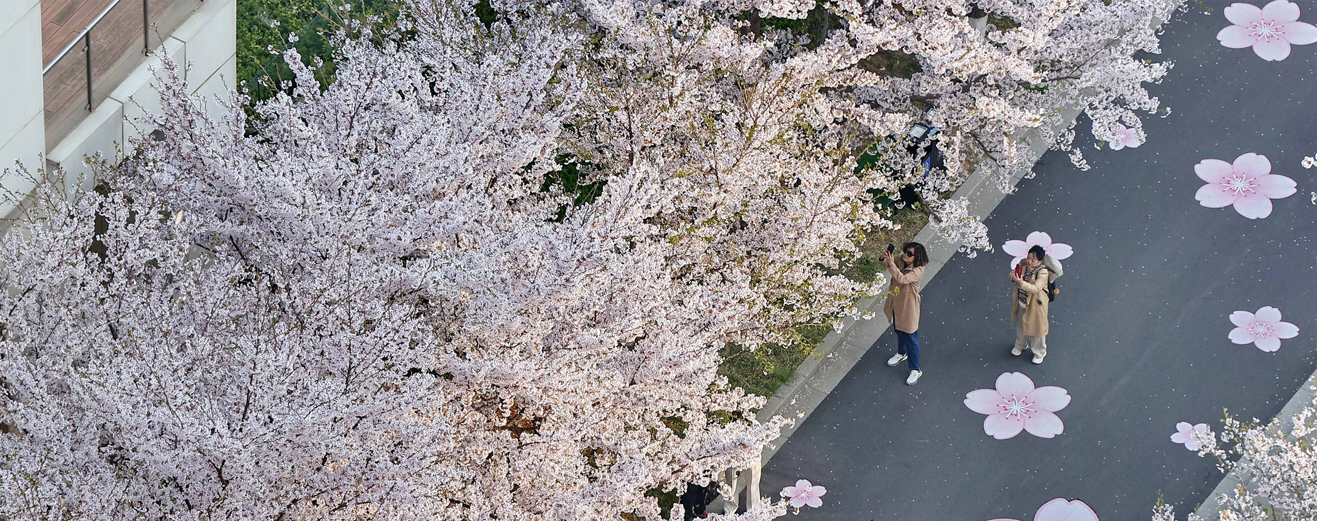 繁花盛放 绘就春日画卷 位于河北省秦皇岛市海港区金梦海湾旅游度假区、海碧台社区周边道路花卉竞相绽放,淡粉色花簇连绵成片,勾勒出清新雅致的城市风景线。