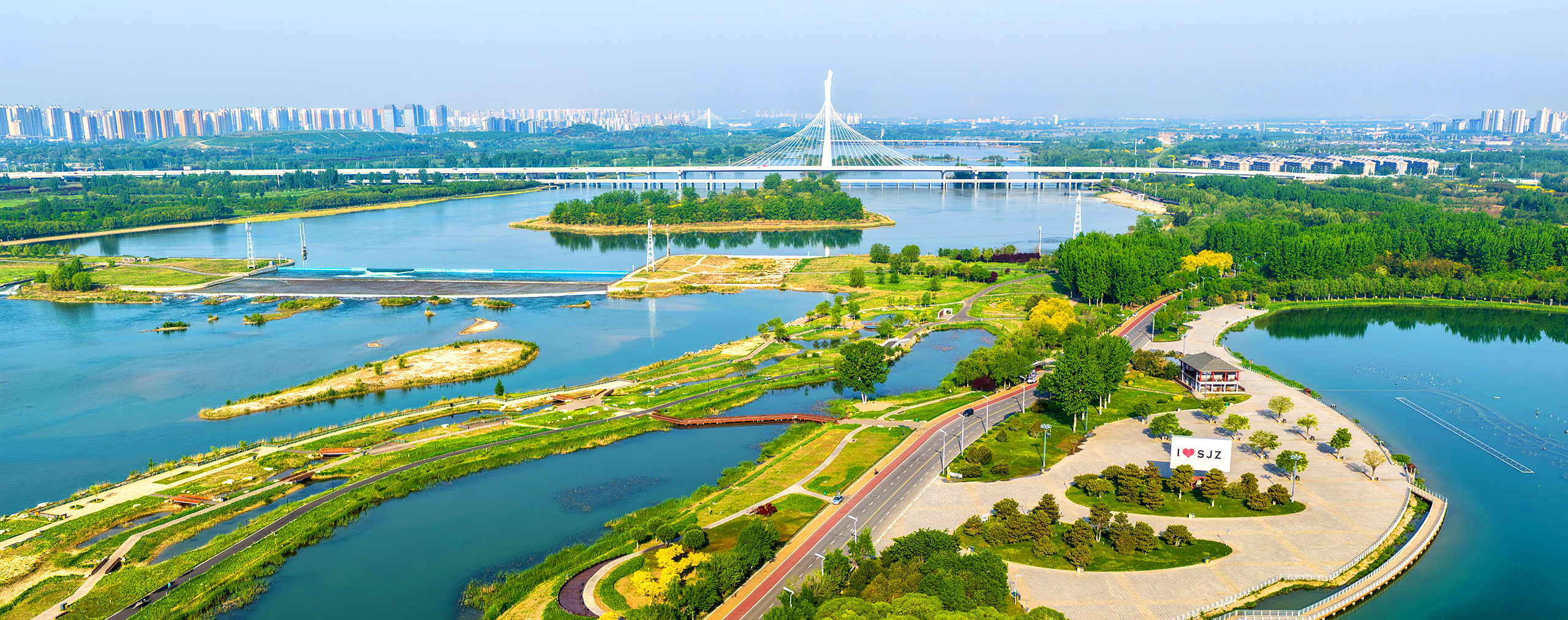 河北省石家庄市滹沱河城区段呈现出一派春日美景。