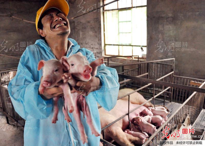 2011年6月22日,一天收获21头小猪崽,李福生乐开了花。 2011年6月22日,“嗷——嗷——”在河北省邯郸市成安县李家疃镇李重村的一个养猪场里,两头母猪产下了21头小猪崽,这让“猪倌”李福生高兴得合不拢嘴。但谁能想到,这个十里八乡闻名的“猪倌”,竟是一名残疾人。不过,有着语言和肢体障碍的他,愣是凭借强大的内心,为自己的人生博出了亮点。(郝群英)