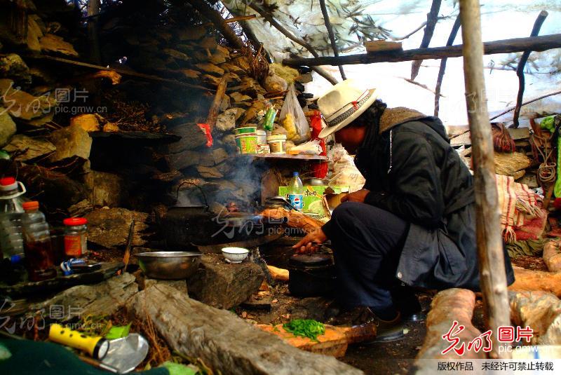 虫草又称冬虫夏草,是一种传统的名贵滋补中药材,与天然人参、鹿茸并列为三大滋补品。虫草主要生长在海拔4000米左右的森林草甸或草坪上,每年大地回春的时候,青藏高原的冰雪缓慢融化,就是挖虫草的季节。每年5月至7月中旬是挖虫草的旺季,我国冬虫夏草主产区各县城,这时候都会迎来浩浩荡荡的“挖草大军”。而中国人对名贵中药材的炒作,只会让“挖草大军”有增无减。飞涨的虫草价格对于凉山州木里的农牧民人均收入起着重要的作用,俗语说:靠山吃山,靠水吃水。冬虫夏草无疑就是上天送给木里农牧民的礼物。虫草是当地农牧民重要的收入来源,每家一个虫草季大概有万把块钱的收入,家里吃的油盐,穿的衣物,添置家电、家具都要靠虫草的收入。当然挖虫草也很辛苦,要在潮湿阴冷的草甸上爬来爬去的,时间长了手和膝盖都遭不住。每年的五月中旬木里麦日乡的村民举家上山挖虫草。挖虫草是当地农牧民重要的收入来源。(张小摄/光明图片)