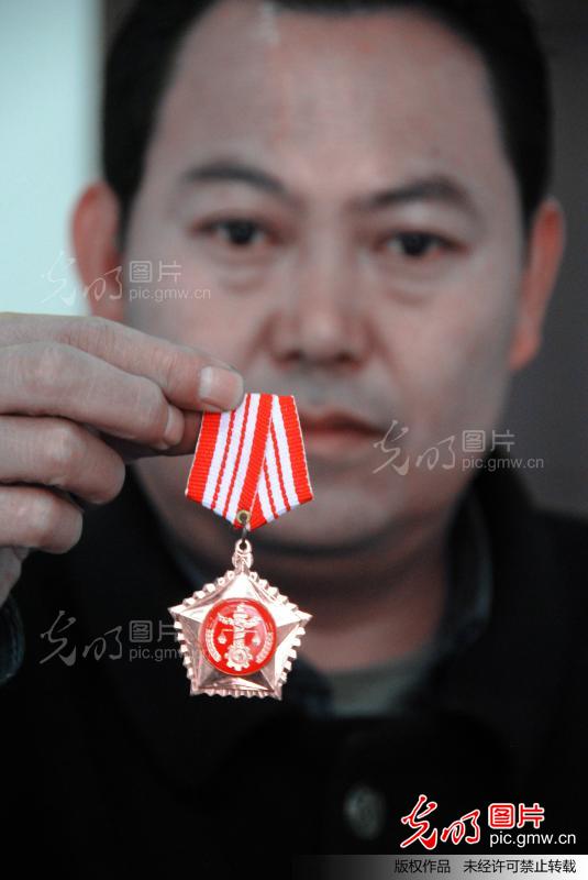 图为法庭负责人蔡过俊获得的立功勋章。(