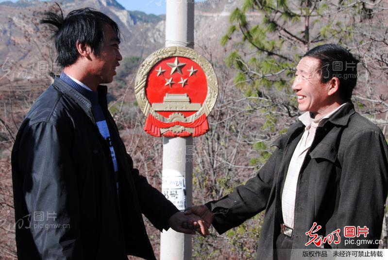 图为一起土地纠纷案成功处理,原被告双方握手言和。(
